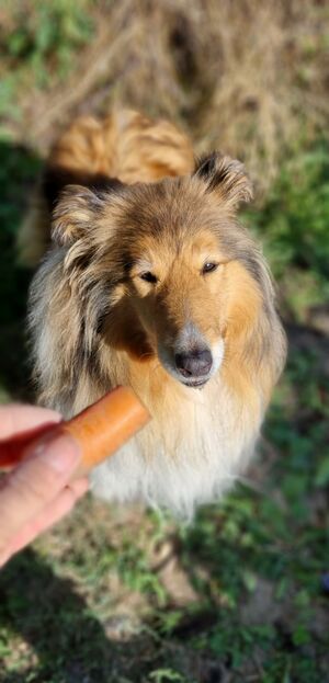 Moc jsme si přáli, aby naše fenečka byla mazlivá a hravá. A můžu říct, že se nám oboje splnilo. Na prvním místě v jejím životě je jídlo. Pro něj by udělala cokoliv :) Leinka kromě jídla si také ráda hraje, a to buď s míčkem, nebo palicemi. To je její! Kdykoliv jdeme na procházku, či výlet, tak jakmile se někde objeví palice či větvička, můžete si být jistí, že skončí u ní. Když je venku, tak lítá jak šílená a je k nezastavení. Dostatek pohybu je pro ni důležitý, ale také ráda zalenoší, a to nejradši v naší posteli :)